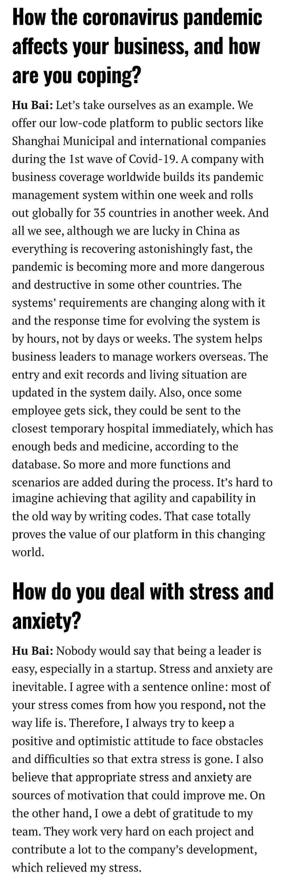 2021年年初,,爱湃斯科技CEO胡柏受邀接受法媒Startup.info的专访,,与Startup info的读者分享了自己的创业经历、、、、以及低代码平台美团钱包商家版的创新之处。。