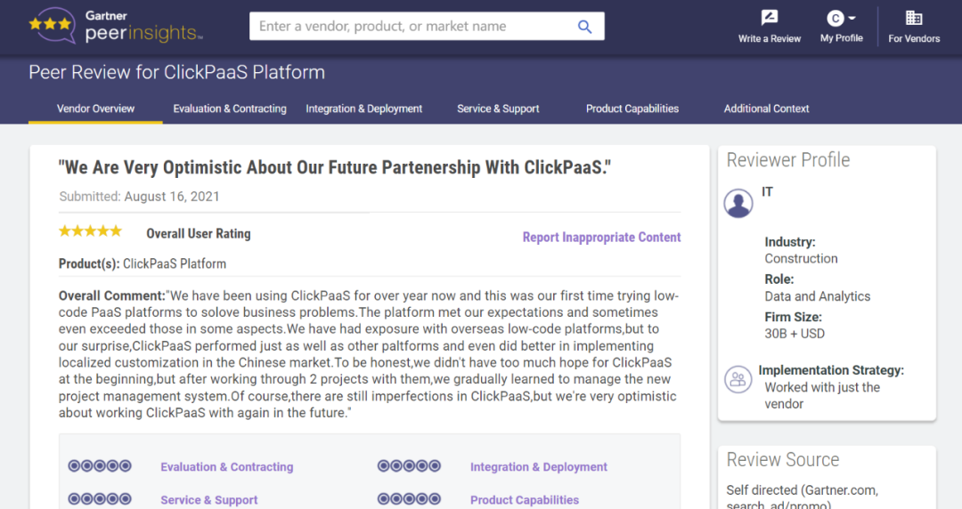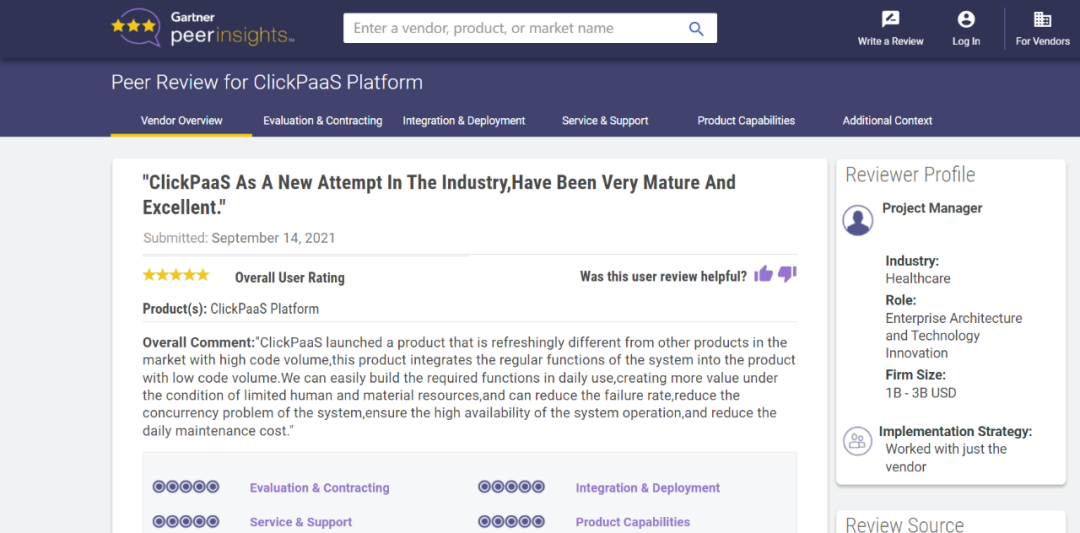 Tips::【Peer Insights】——用户对企业IT产品和服务发布真实评价的平台。。。。目前已有355个市场,,,255,000条经过验证的评价。。。。每一条评价Gartner会针对参评企业营收规模及参评人员信息做验证、、评价内容做多维核实。。。。